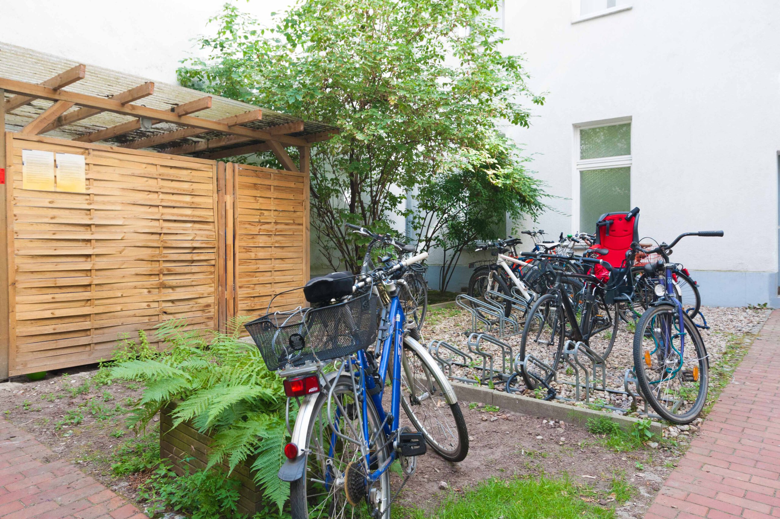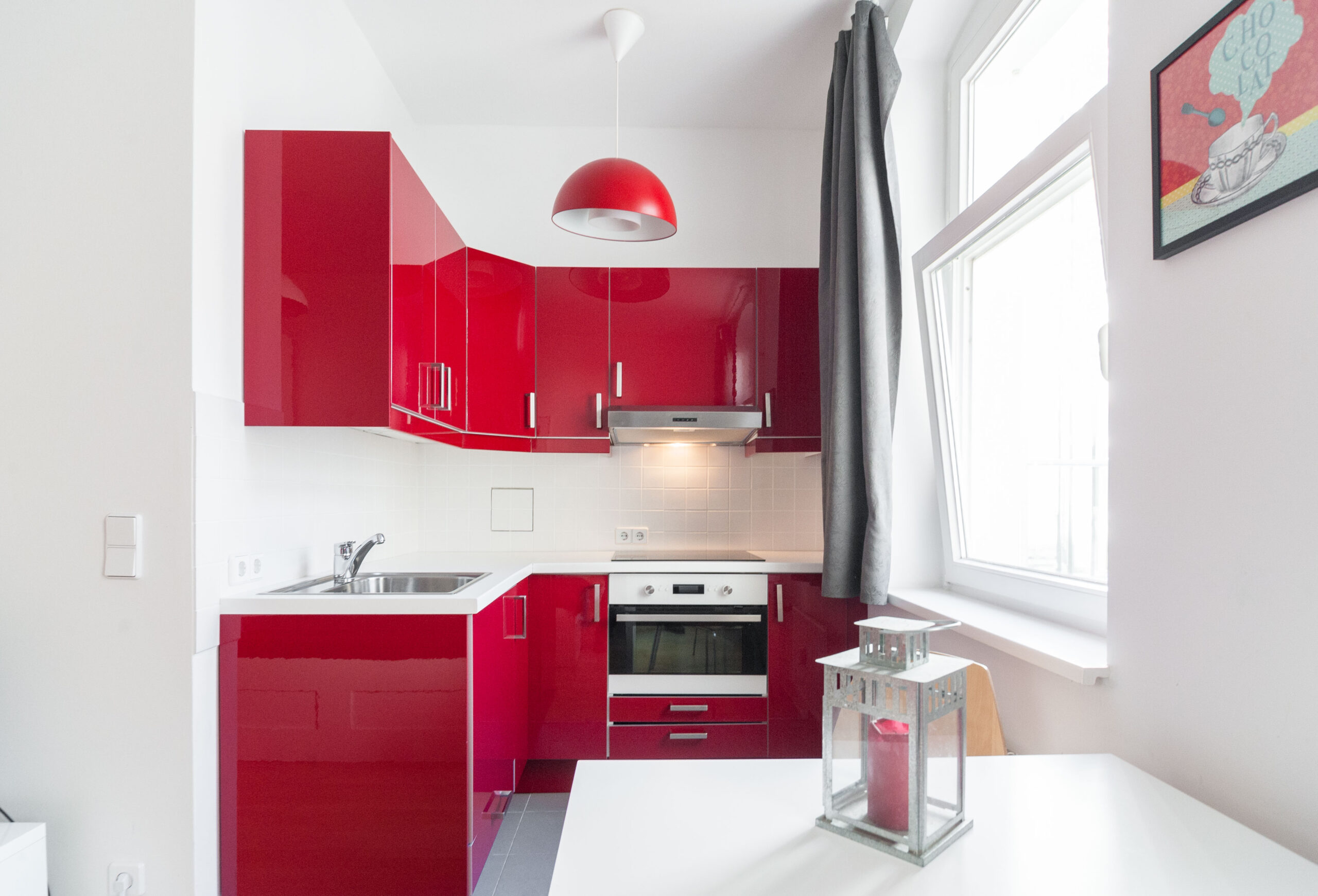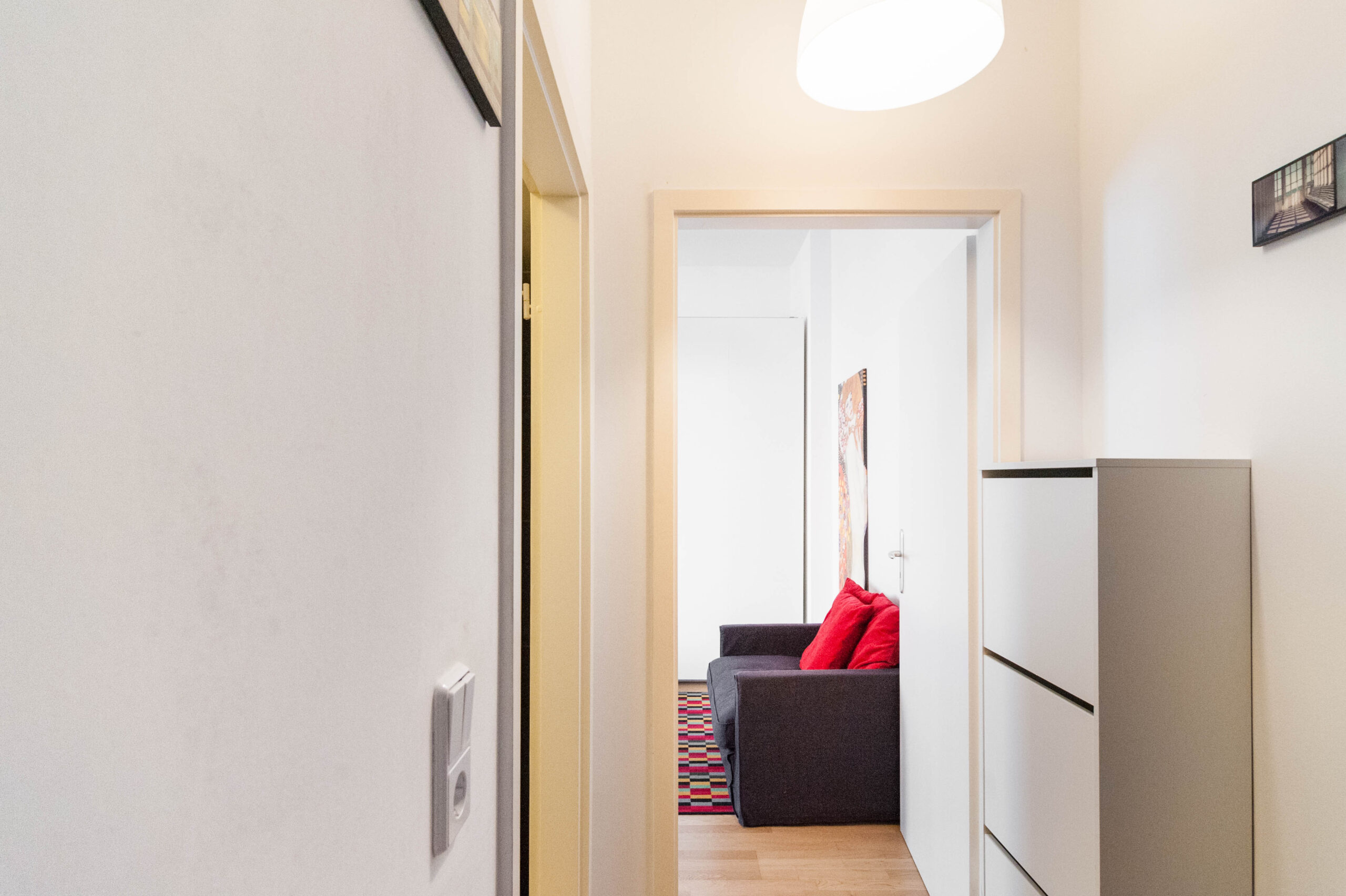 The beautiful studio apartment is located on the 3rd floor in the quiet rear building. It has a double bed, a big wardrobe for clothing, a dining table with chairs, a comfy amrchair and a TV bench with TV. The American-style kitchen has fitted cupboards and kitchen equipment. The fully tiled bathroom has a shower and there is also a washing machine. In the apartment there are some kitchen utensils, bedding and towels, but depending on your needs you might need to bring some in addition.
